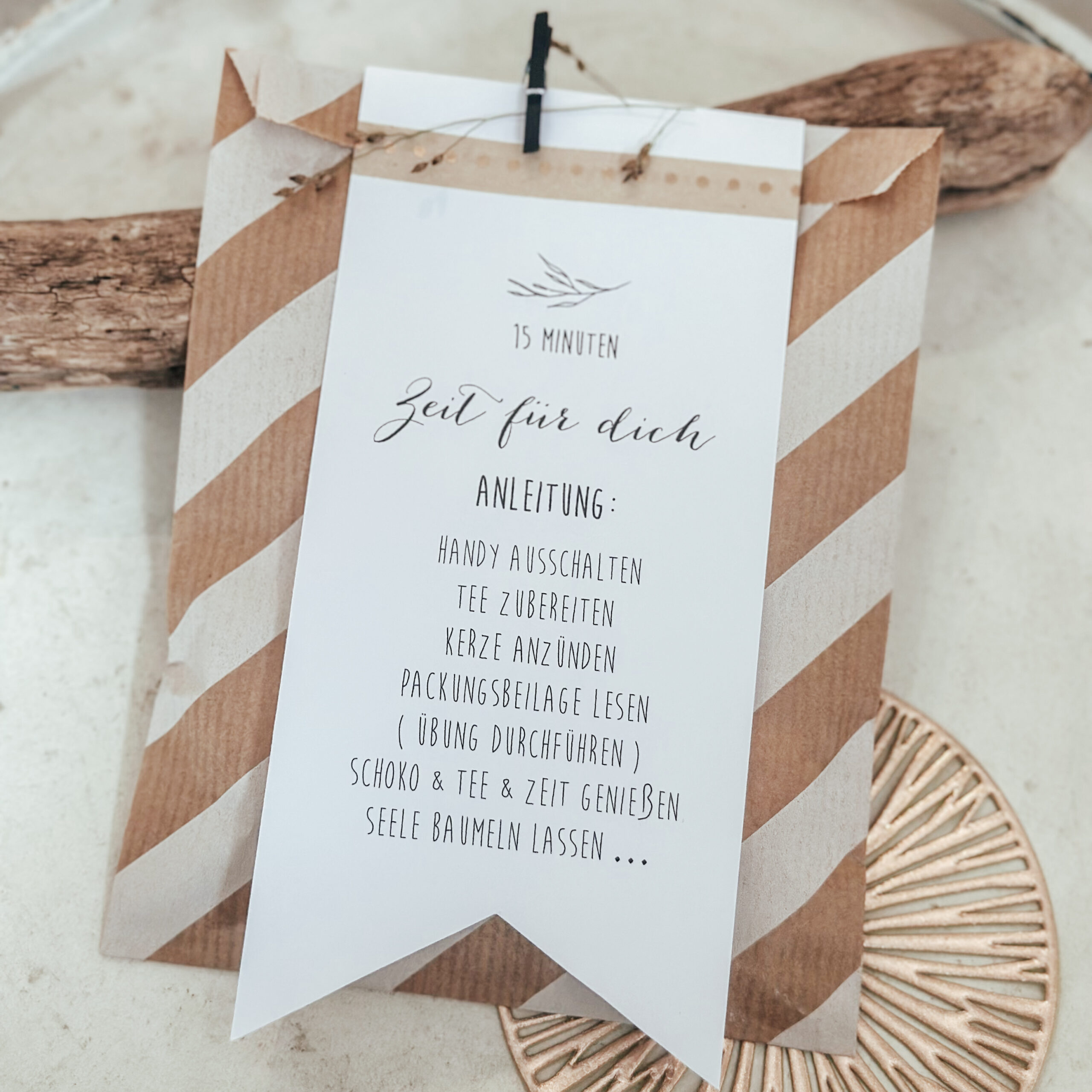 Dieses liebevoll gestaltete Kraftpapiersackerl „15 Minuten für dich“ schenkt dir einen Moment der Ruhe, Wärme und Achtsamkeit – perfekt für die gemütliche Herbst- und Adventszeit.