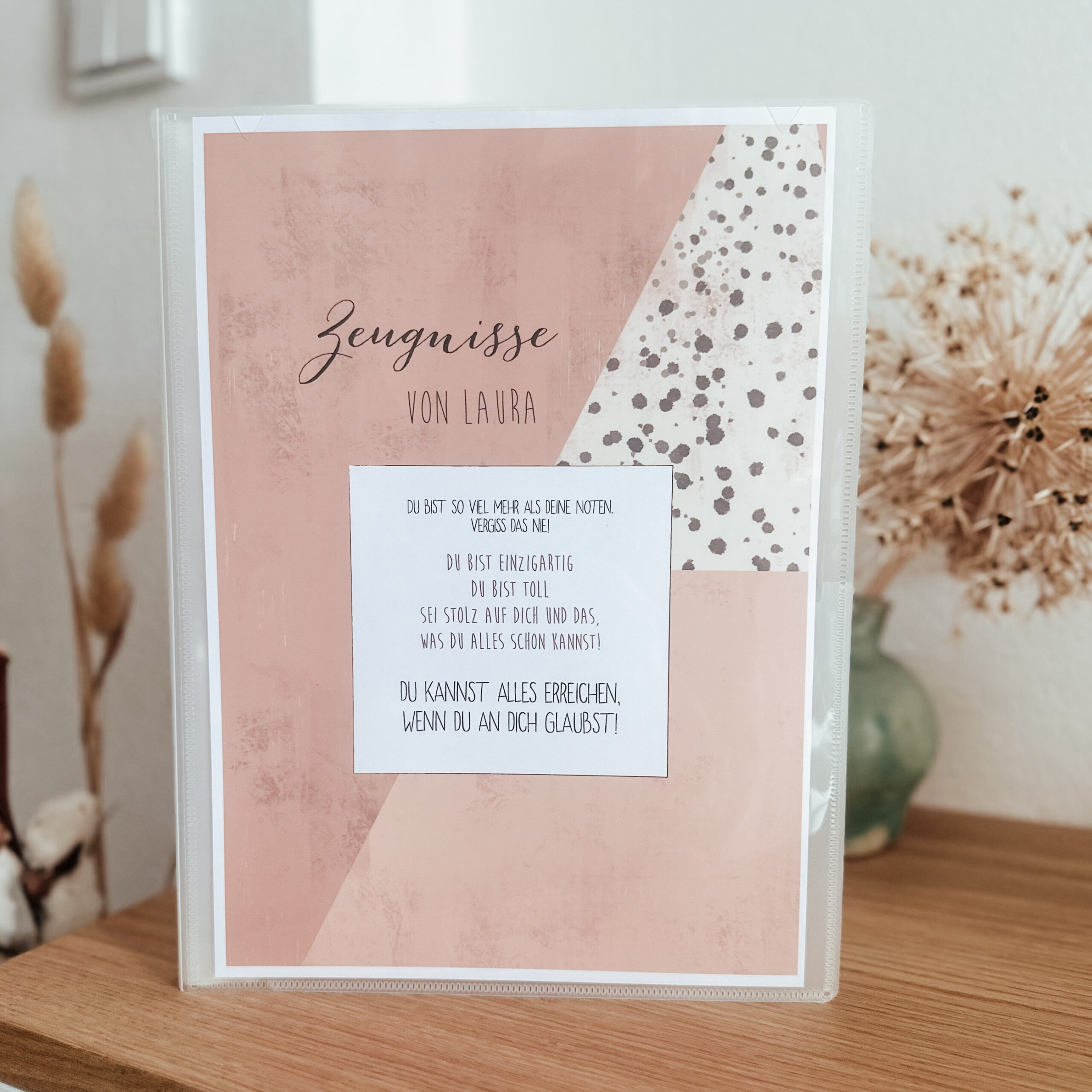 Besonders wichtig war mir der Spruch auf dieser Zeugnismappe Mädchen: